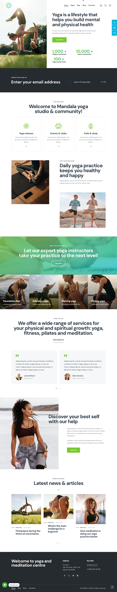 The Mandala website is built around a premium WordPress theme designed for yoga studios, wellness centers, and holistic retreats. The client wanted a site that could beautifully reflect the calm, balanced, and spiritual nature of their brand — while also offering practical features like class information, events, a blog, and an online shop. The objective was to combine a tranquil visual experience with intuitive navigation and a functional layout that supports both community engagement and commerce.